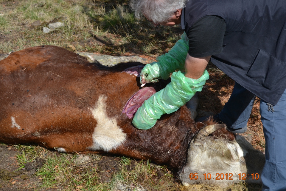 Σε αυτοψία νεκρής αγελάδας που είχε πληγεί από αρκούδα (Ursus arctos L.) στην περιοχή του Λειβαδίτη, παρευρέθηκε προσωπικό του Φορέα Διαχείρισης Οροσειράς Ροδόπης σήμερα 5/10/12, κατόπιν ενημέρωσης από τον κτηνίατρο του ΕΛΓΑ κ. Ναθαναηλίδη Στράτο και σε άμεση συνεργασία μαζί του. Τα στελέχη του Φορέα συζήτησαν με τον πληγέντα κτηνοτρόφο κ. Παρασκευά Μιχαηλίδη, ενημερώθηκαν για το συμβάν και την παρουσία της αρκούδας στην περιοχή και παράλληλα τον ενημέρωσαν για πιθανά προληπτικά μέτρα τα οποία δύναται να ακολουθήσει.