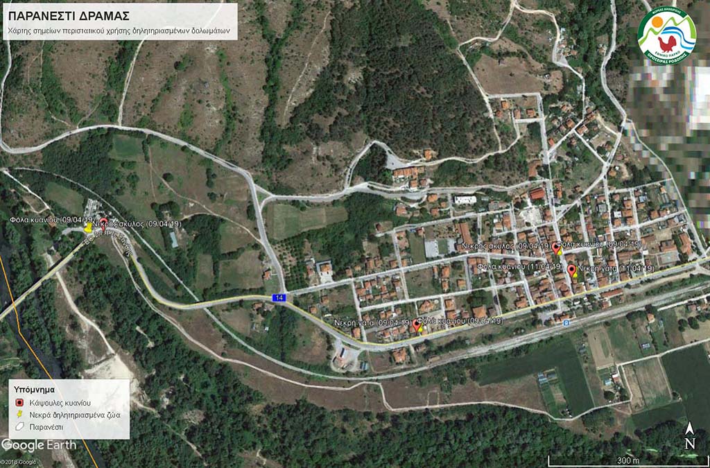 Χάρτης σημείων απόρριψης δηλητηριασμένων δολωμάτων κυανίου