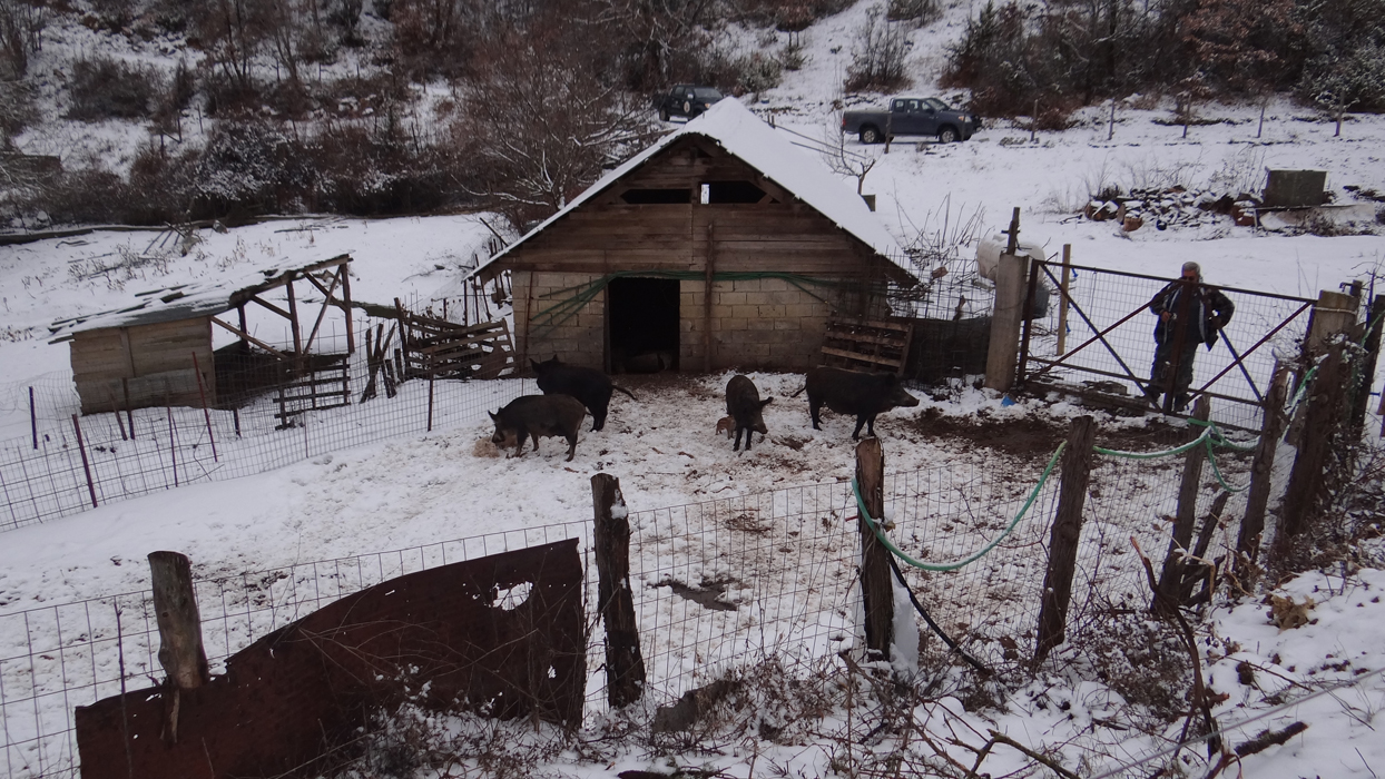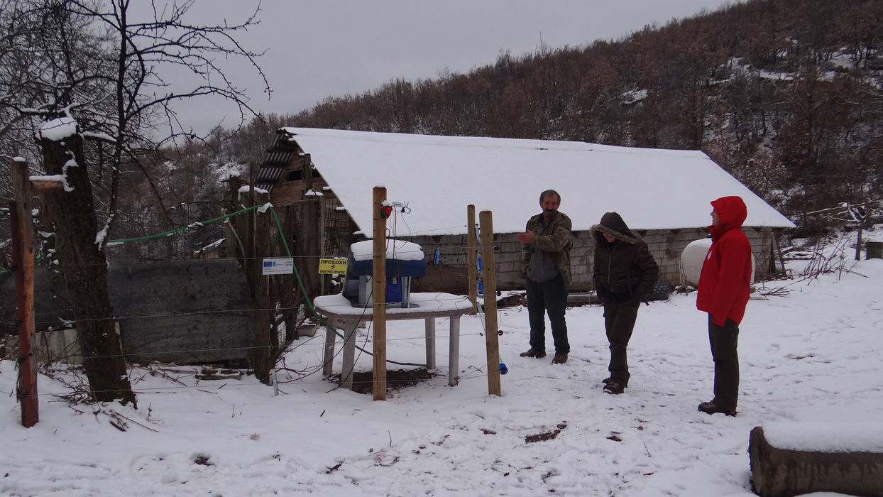 Διαπιστώθηκε ότι η μικρή χοιροτροφική μονάδα που διατηρεί ο κ. Καλαντίδης στην περιοχή φυλασσόταν από επίθεση αρκούδας, καθώς ελέγχθηκε η καλή λειτουργία της ηλεκτροφόρας περίφραξης.