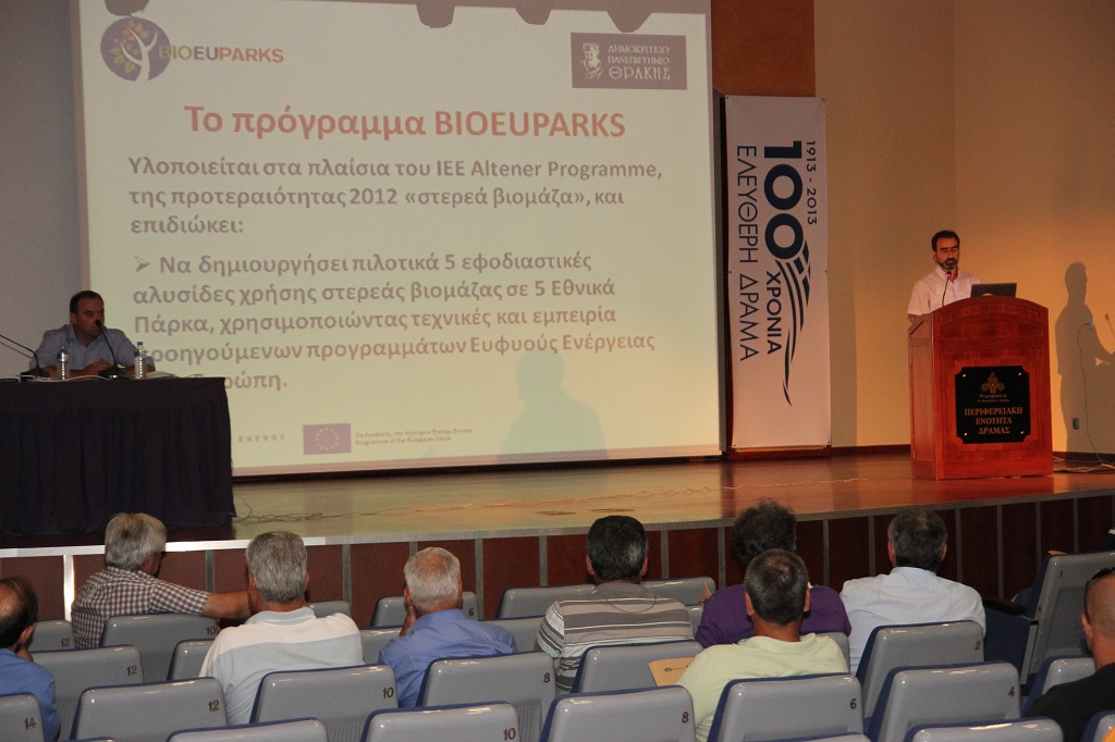 Τη Δευτέρα 15 Ιουλίου 2013 πραγματοποιήθηκε η προγραμματιζόμενη εναρκτήρια ημερίδα του προγράμματος BioEUParks «Αξιοποιώντας τις δυνατότητες της στερεάς βιομάζας σε εθνικά πάρκα της Ε.Ε. – Exploiting the potentialities of solid biomasses in EU Parks». Το συγκεκριμένο πρόγραμμα ανήκει στο πρόγραμμα - πλαίσιο ΙΕΕ (Intelligent Energy Europe - Ευφυής Ενέργεια για την Ευρώπη) στο οποίο συμμετέχουν δέκα εταίροι από έξι χώρες. Η Ελλάδα εκπροσωπείται από το Φορέα Διαχείρισης Οροσειράς Ροδόπης (ΦΔΟΡ) και το Τμήμα Δασολογίας και Διαχείρισης Φυσικών Πόρων του Δημοκρίτειου Πανεπιστημίου Θράκης.