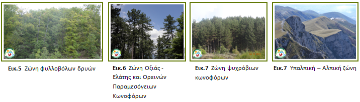 • Ζώνη Οξιάς- Ελάτης και Ορεινών Παραμεσόγειων Κωνοφόρων (Εικ.6): αντιπροσωπεύεται από τα οικοσυστήματα της οξιάς και της μαύρης Πεύκης